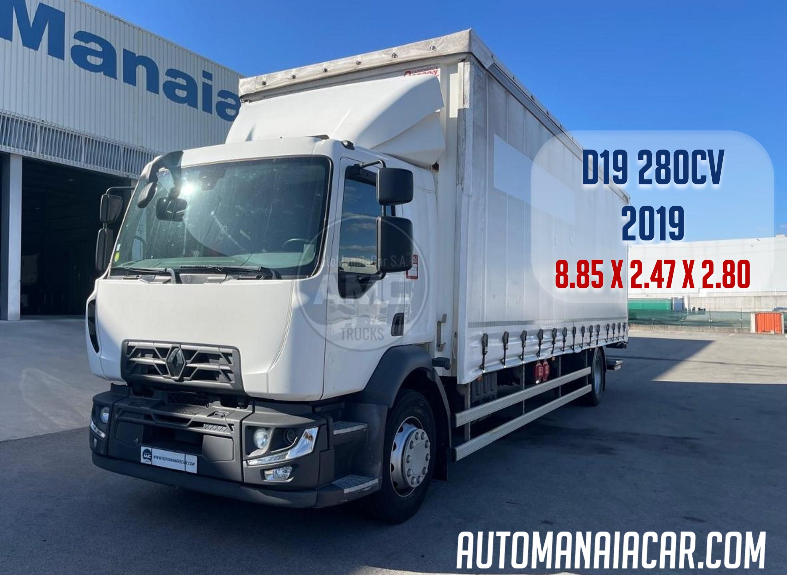RENAULT D19 280 EURO6 4X2 CORTINAS E TETO DESLIZANTES 8.85 X 2.47 X 2.80